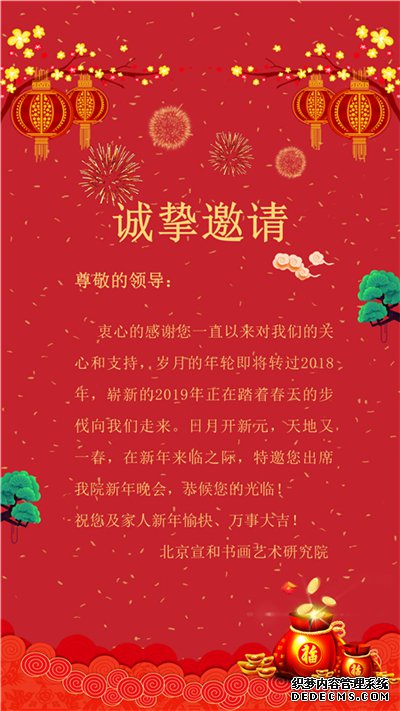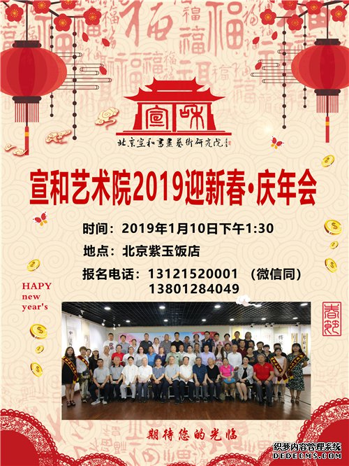 “翰墨飘香弘国粹、丹青焕彩咏华章”2019年来临之际,北京宣和书画艺术研究院联手国粹书画进百姓家俱乐部举办“2019迎新春·庆年会”活动,邀您一道齐聚我院,贺禧即将到来的猪年。届时将邀请将军、部长、艺术家、特型演员、明星、企业家等出席年会共襄盛举,喜迎2019年。