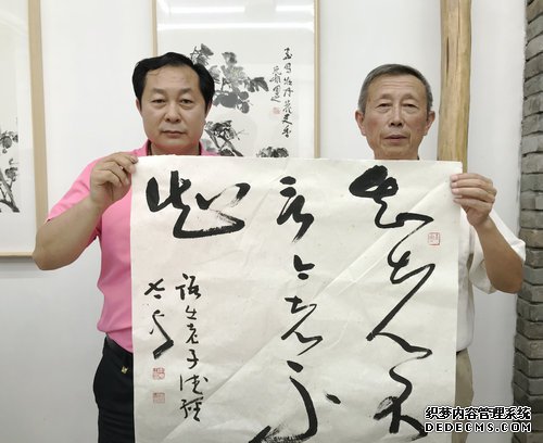 李太平向中国周易新闻网总编许顺喜赠送书法作品