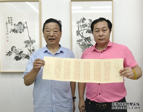 连吉新向中国周易新闻网总编许顺喜赠送书法作品《心经》