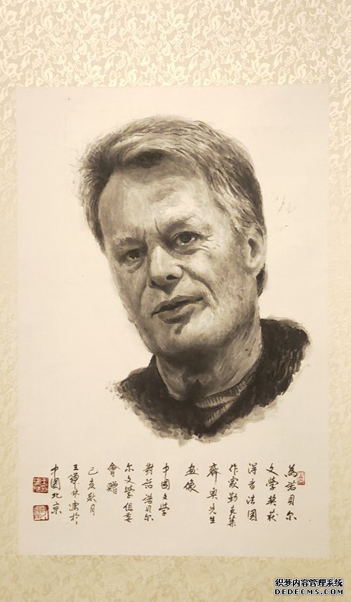 著名书画家王瑞林创作的勒克莱齐奥水墨肖像