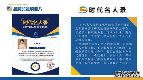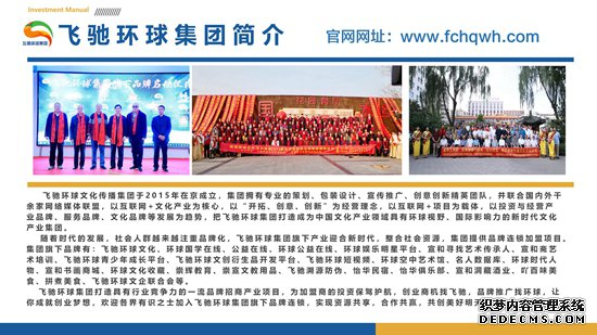 飞驰环球集团旗下拥有各类品牌项目涵盖文化艺术、餐饮行业、飞驰环球视频、环球直播、宣和艺术院、宣和斋培训、拜师学艺、环球文创、环球国学、国学百科、名人数据库、公益在线、3D展馆、环球收藏、成长平台、宣和洞藏酒、飞驰溯源、环球娱乐、环球名人俱乐部等为创业者量身打造的创业项目,让创业者实现自己的商机,实现您创业的梦想,开拓自己的事业,打造属于自己的平台。