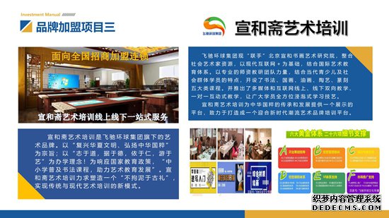 飞驰环球集团旗下拥有各类品牌项目涵盖文化艺术、餐饮行业、飞驰环球视频、环球直播、宣和艺术院、宣和斋培训、拜师学艺、环球文创、环球国学、国学百科、名人数据库、公益在线、3D展馆、环球收藏、成长平台、宣和洞藏酒、飞驰溯源、环球娱乐、环球名人俱乐部等为创业者量身打造的创业项目,让创业者实现自己的商机,实现您创业的梦想,开拓自己的事业,打造属于自己的平台。