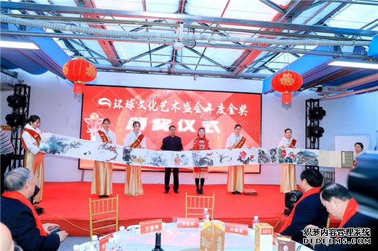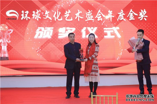 单玉志向陈爱莲(秘书代领)颁发环球文化艺术盛会年度金奖