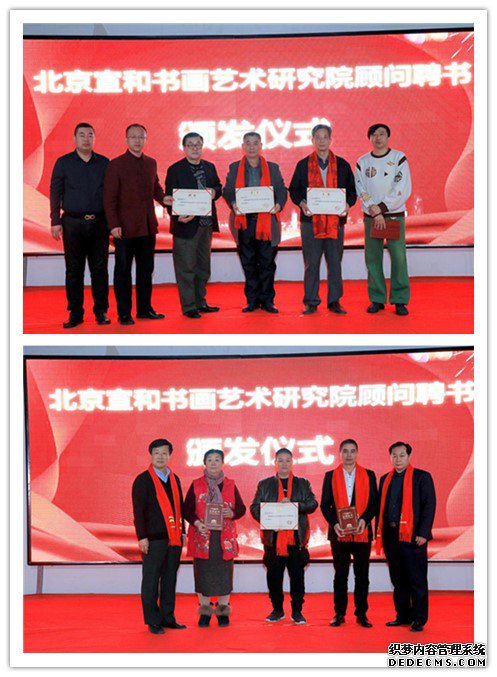 张成发、张子嘉、王大川、陈业庭、姚定平、雍刚、王文德、王化宝、苑建国被北京宣和书画艺术研究院聘为艺术顾问,并有顾问韩忠贵、执行院长单玉志、常务副院长许顺喜、副院长张文怀、副院长张业军、副院长高源、副院长刘俊、副院长周曦、秘书长杨东亮、院委会主任葛棣、副秘书长冯永军、王健为以上嘉宾颁发宣和艺术院顾问聘书。