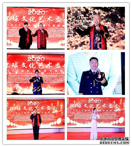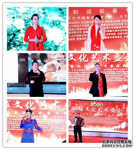 晚会开始后,著名男高音歌唱家西部歌王张红旗、单田芳关门弟子杨永恩、《星光大道》嘉宾评委塔拉吉斯、《星光大道》歌手:小保安 张宏争、青年歌手盛中华、青年歌手肖文莉、民族歌手肖国鑫、青年歌手赵泽、艺术家柴京津分别以演唱歌曲、相声、乐器等多种形式为大家带来精彩节目,并赢得阵阵掌声与好评。艺术家杨丙臣、周曦、武凤金、王国增、赵福等艺术家为本次活动赠送书了法作品以示祝贺。可以说整场活动在充满浓浓节日气氛的同时,也为2020新年的到来增添了别样的文化喜庆色彩。