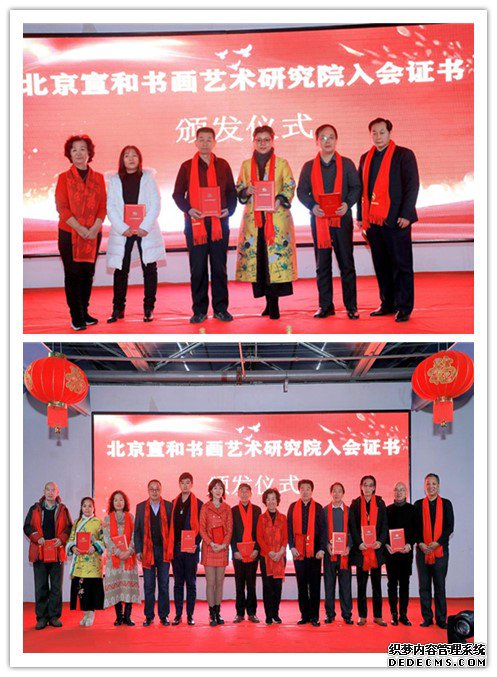 与此同时,宣和书画艺术研究院顾问白雁、雍刚、王大川,张政、谭建新、张业军,为 陈泓宇、胡节、陈立英、爱新觉罗·焘云、爱新觉罗·启年、覃大松、傅泊、孟昭和、李庆新、许美祥、杨羽莎、田一宏、杨力争、李文进等新加入宣和艺术院的成员颁发证书。