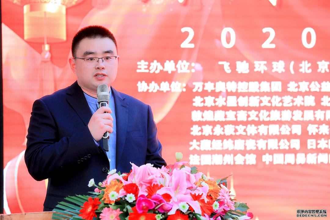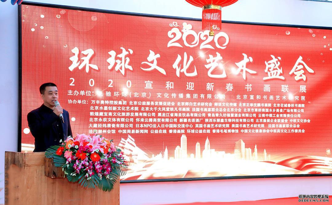 本网讯(记者 冯永军 报道):2020年1月9日下午,由飞驰环球(北京)文化传播集团有限公司、北京宣和书画艺术研究院主办;万丰奥特控股集团、北京公益服务发展促进会、师说文化传媒、北京正举沈鹏书画院、北京花城春秋书画院、北京师白艺术研究会、北京水墨创新文化艺术院、北京大千大风堂轶凡书画院、法国书画家联合总会北京分会、北京市草桥南国水乡美食广场有限公司、荣成泰祥食品股份有限公司、鲅鱼水饺,敦煌藏宝斋文化旅游发展有限公司、黑龙江省海圣饮品有限公司、青岛青久坊福慧酒业有限公司、云南中烟工业有限责任公司、北京永荻文体有限公司、怀来云腾商贸有限公司、新疆名诺酒厂、陕西乐丽鑫生物科技有限公司、北京服装企业联盟会、大藏经纬唐瓷有限公司、日本NPO法人日中国际交流中心、英国书画艺术研究院、美国书画艺术研究院、法国书画家联合总会、法国潮州会馆、香港画院、香港毛笔博物馆、中国周易新闻网、公益在线、环球公益在线协办支持的飞驰环球2020环球文化艺术盛会暨宣和迎新春书画联展活动在北京市丰台区世界花卉大观园隆重举行。