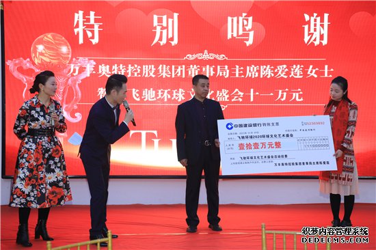 本次环球文化艺术盛会还得到了万丰奥特控股集团董事局主席陈爱莲女士的赞助支持,为感谢其爱心精神,经公益在线编委会研究决定向陈爱莲女士颁发名誉站长证书,宣和艺术院院委会授予陈爱莲女士本次盛会最高荣誉“环球文化艺术盛会金奖”并赠送画院艺术家精心创作的画册留念,活动现场由陈爱莲女士秘书王幸娇带领。